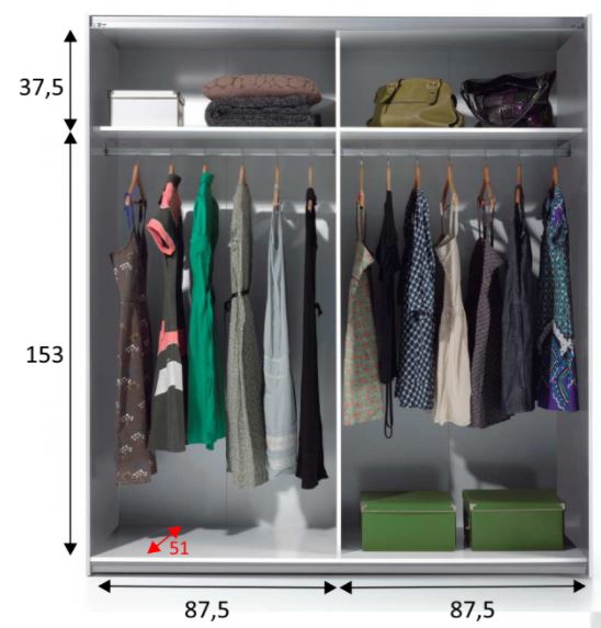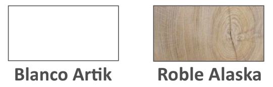 Armario ARYA, de 2 puertas corredera. Fabricado en melamina de alta calidad, color Blanco Artik combinado con Roble Alaska. Su interior se compone de 2 altillos y barras de colgar. Combinable con gran variedad de dormitorios.