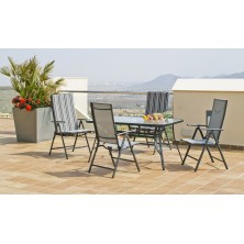 La tumbona Sulam 5, está fabricada en acero y textilén. relájate con sus 5 posiciones en la playa, en el jardín o en la terraza.