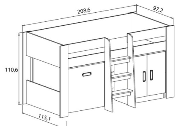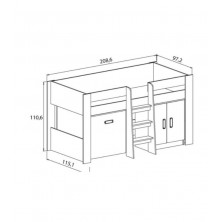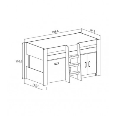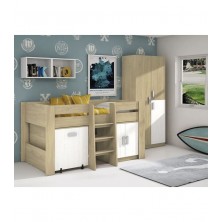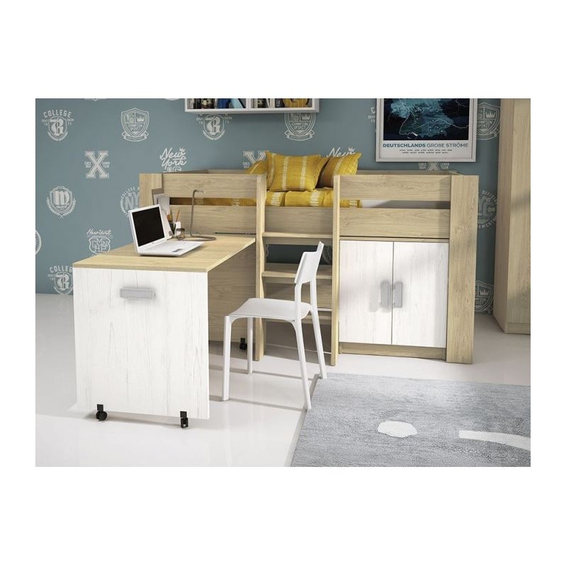 Cama Block Donald, se compone de cama alta con escalera, armario pequeño y escritorio extraíble. Es una cama compacta muy completa que te permitirá ampliar el espacio de las estancias más reducidas, a la misma vez que consigues una cama juvenil original y diferente. Está disponible en dos colores de terminación.