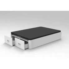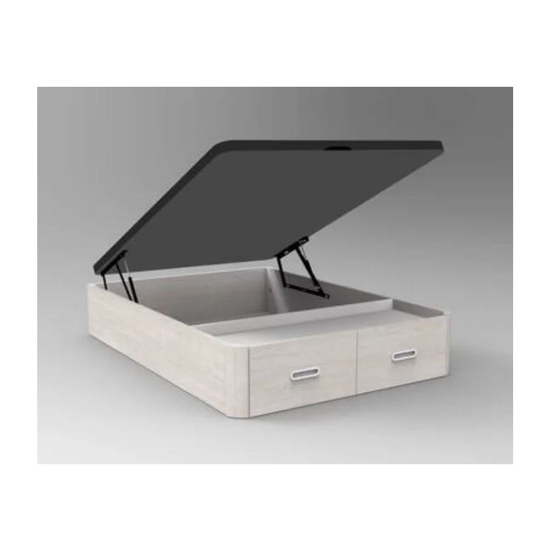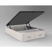 Canapé Bellagio XL, una novedad que viene mejorada respecto al modelo anterior. Se compone de gran capacidad, con una altura total de 40 cm. Incorpora dos cajones en la parte frontal, con tirador embutido, lo que permite un almacenamiento sencillo para utensilios de diario. Dejando libre el resto del canapé para guardar mantas y todo lo que necesite. La tapa está tapizada en color gris oscuro. Este canapé está disponible en varios colores.