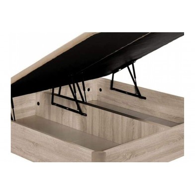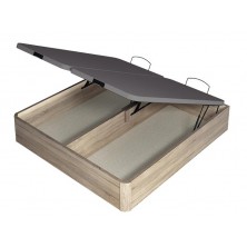 Canapé Dúo XL, tiene apertura frontal y la altura total es de 40 cm. y la tapa está tapizada en color gris oscuro y dividida en 2 partes. Este canapé dispone de una gran capacidad de almacenaje. Disponible en varios colores.