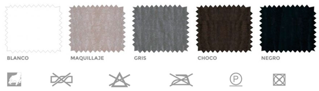 No planchar, no retorcer, ni centrifugar, no meter en secadora. Admite limpieza en seco (solo profesionales).
