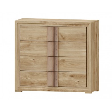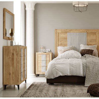 La Cómoda Turín con tirador alistonado, compuesta por 4 cajones de gran capacidad, opcionalmente puede adquirir espejo, o cualquier otro artículo de la colección para completar la estancia. Está terminado en color Roble, con detalles en varios acabados. Se trata de una cómoda de estilo moderno y elegante, gracias a sus colores se consigue gran luminosidad y amplitud. Fabricado en material de primera calidad.