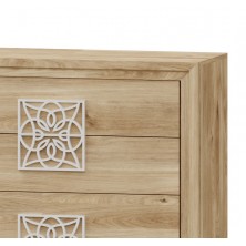 La Cómoda Turín está compuesta por 4 cajones de gran capacidad, opcionalmente puede adquirir espejo, o cualquier otro artículo de la colección para completar la estancia. Está terminado en color Roble, con detalles en varios acabados. Se trata de una cómoda de estilo moderno y elegante, gracias a sus colores se consigue gran luminosidad y amplitud. Fabricado en material de primera calidad.