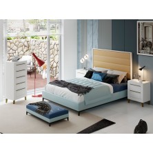 El dormitorio Niza se compone de cabecero y 2 mesitas de 2 cajones con patas, opcionalmente se puede añadir Sinfonier y Espejo. Ideal para crear ambientes elegantes, amplios, y luminosos, a la estancia donde se coloque. Se trata módulos con pata, que permiten su montaje con distinta distribución, para poder conseguir la composición deseada.
