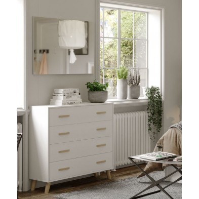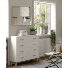El dormitorio Nórdico se compone de cabecero y 2 mesitas de 3 cajones con patas, opcionalmente se puede añadir Cómoda y Espejo. Ideal para ambientes de medidas reducidas, aportando elegancia, amplitud, y luminosidad, a la estancia donde se coloque. Se trata módulos con pata, que permiten su montaje con distinta distribución, para poder conseguir la composición deseada.