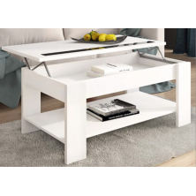 Mesa centro Elevable Agueda, de estilo moderno, ideal para complementar frente al sofá. Muy polivalente ya que tiene una bandeja inferior, además de ser elevable lo que permite elevar la parte superior de la mesa, y que quede un cajón para almacenaje. Su terminación se puede elegir en color Cambria, o Blanco. Tiene un cristal en color negro que le aporta un plus de elegancia.