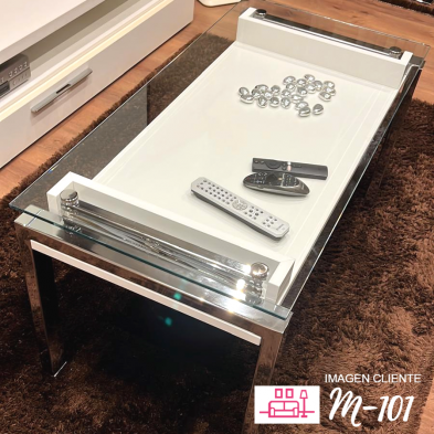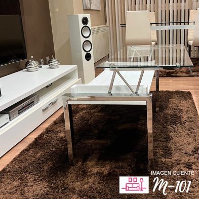 La Mesa de centro M-101, es práctica y funcional, ya que se compone de sistema elevable, para poder ganar altura cuando se necesite tomar un café o merienda. Estéticamente queda ideal con multitud de estancias, ya que es de carácter elegante y distintivo. En la parte inferior, queda un hueco, ideal para almacenaje de objetos pequeños, como el mando de la TV, libros, etc.