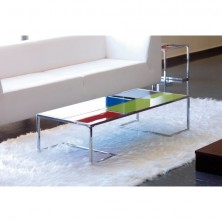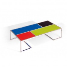 La mesa de centro modelo Mondrian se compone de un diseño de sofisticación plena inspirada en recursos pictóricos reconocidos mundialmente. Un modelo que enriquece y da vida a su entorno añadiendo a su vez a la estancia atributos de estilo y vanguardia. Ella se combinan el cristal templado en varios colores y su estructura cromada.