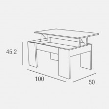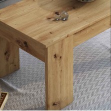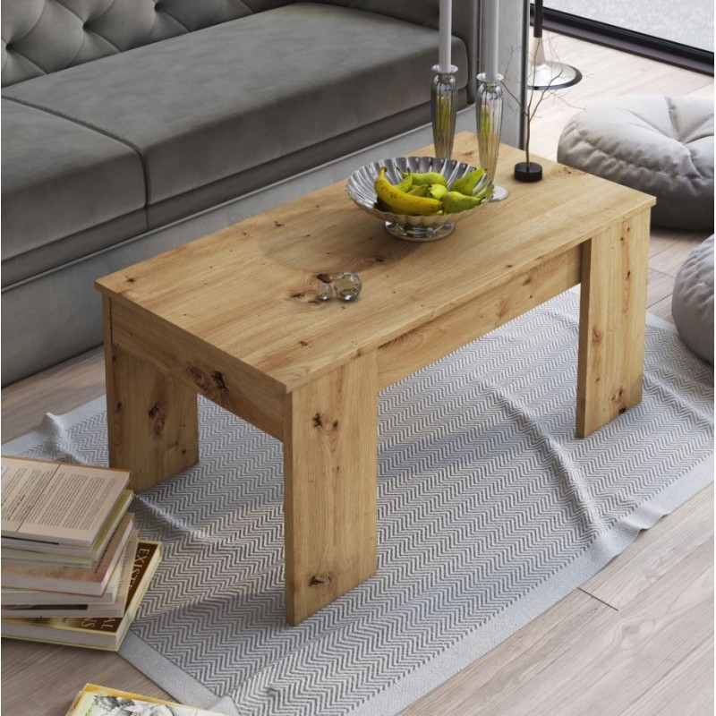 Mesa de centro Petra fabricada en melamina de 16 mm acabado roble artisan. La tapa es elevable, se eleva fácilmente para facilitar su uso, y así tomar unos aperitivos cómodamente. Bajo la tapa tiene un cajón, ideal para guardar multitud de objetos. Con herrajes metálicos de alta calidad. Sus patas son rectangulares unidas al cajón mediante tornillería.