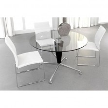 La mesa modelo Azzaro es una mesa de diseño minimalista, en la que destaca la gran calidad de sus acabados y su polivalencia ya que la usamos tanto para salones, para instalaciones de restauración e incluso para salas de juntas o reunión ya que sus medidas hacen de esta mesa redonda una mesa espaciosa y muy útil para trabajar.