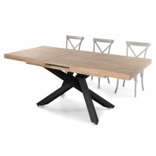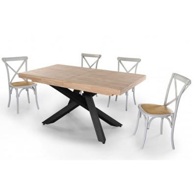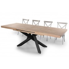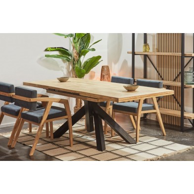 Mesa de Comedor Extensible Xena tiene la tapa fabricada en Roble natural, acabado Nordish. Sus patas metálicas en color negro entrecruzadas, hacen de este mesa una estructura espectacular, unidas en el centro por un cuadrado de metal y madera de roble aportando mayor estabilidad. Cuenta con diseño único, definido por sus acabados. Este modelo tiene una terminación de líneas rectas, con acabados pulidos. Sus patas tienen conteras antirayado, para no dañar el pavimento.