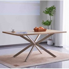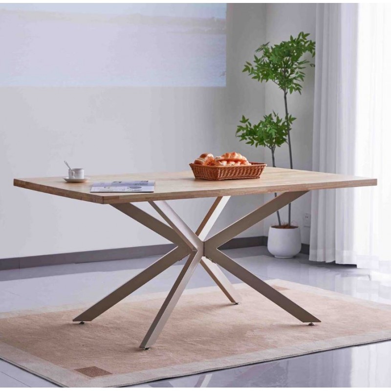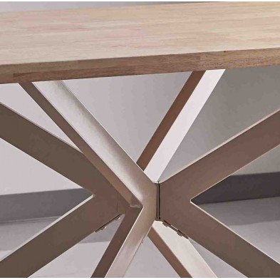 Mesa de Comedor Eme, su estructura metálica en color crema, cuenta con un diseño único. La tapa está fabricada en madera maciza color natural. Cuenta con 4 patas unidas en el centro, aportando mayor estabilidad. Diseño y comodidad van unidos de la mano, ya que Eme es una mesa para uso diario, fácil de combinar en cualquier ambiente.