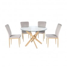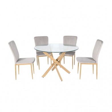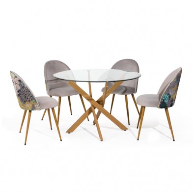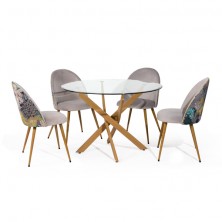 La mesa de comedor Deli tiene la tapa redonda, su estructura metálica en acabado imitación madera, cuenta con 4 patas entrelazadas unidas en el centro, con conteras antirayado para no dañar el pavimento y regular las patas. El diseño de la mesa Delia es espectacular, ya que destaca sobre las demás, con unos acabados impecables gracias sus terminaciones. Esta pensada para utilizar a diario, ya que el cristal es templado.
