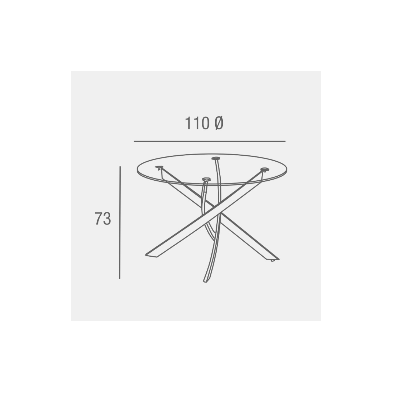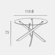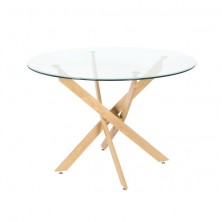 Mesa redonda de Cristal Deli de 110 cm de diámetro, con estructura metálica acabado imitación madera. Sus patas entrelazadas hacen que destaque sobre las demás, es una mesa de alto estilo, con unos acabados impecables. El cristal es templado de alta resistencia, perfecta para ambientes de comedor y cocina.