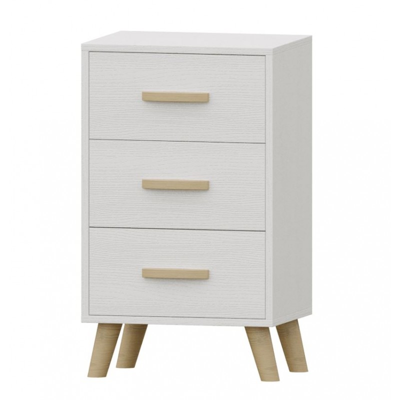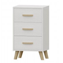 La mesita Nórdico, está compuesta por 3 cajones. Fabricado en color Blanco Nieve, con detalles tiradores y patas en Roble. Se trata de un sinfonier de estilo moderno y elegante, gracias a sus acabados se consigue gran luminosidad y amplitud. Disponible el resto de la colección en nuestra web. Fabricado en material de primera calidad.