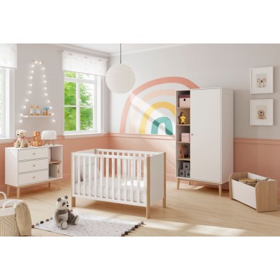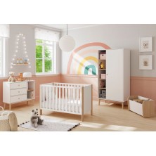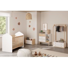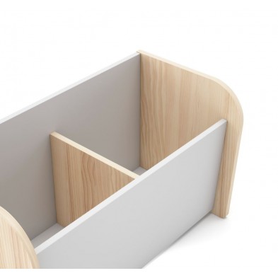 Baúl Esteban, fabricado en DM y madera de pino, combinando el color blanco y madera natural. Es un baúl con diseño moderno y actual, combinando los acabados para dar un resultado único. Ideal para que los más pequeños de la casa puedan guardar los juguetes, zapatos... Crea un ambiente acogedor, ya que gracias a sus acabados podrás decorar fácilmente, destaca por su original diseño, así como por la naturalidad que desprende.