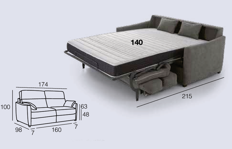 El sofá cama Inka cuenta con un práctico sistema de apertura italiana que permite convertirlo rápidamente en una cama de 140x200 cm, equipada con un colchón especialmente confortable para un descanso óptimo. Su diseño compacto lo hace perfecto para ambientes con espacio limitado. Inka combina resistencia, elegancia y confort.