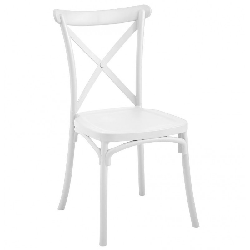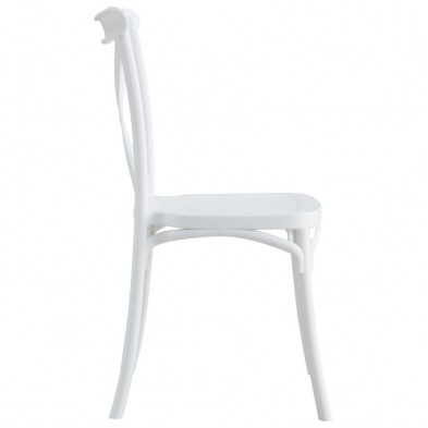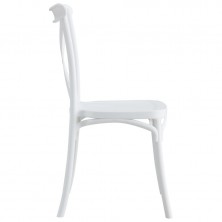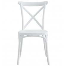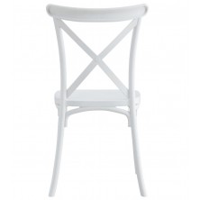 La silla Crossback en polipropileno color blanco. Gracias a su diseño, es un mueble de alta decoración que destaca por sus acabados, de estilo clásico y actual, que hace que sea original. Se venden en pack de 4 unidades.
