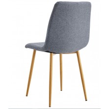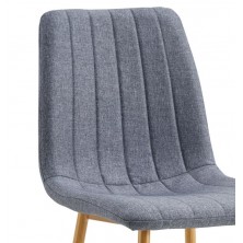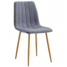 Silla Comedor Nails, destaca el diseño del respaldo con costuras decorativas lineales. Es ideal para cualquier estancia gracias a su diseño minimalista. Está compuesta por asiento y respaldo acolchados, lo que hace que aporte una gran comodidad y calidad, con tejido en color gris y patas metálicas efecto madera oak con acabado natural.