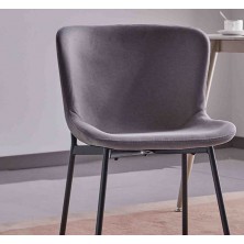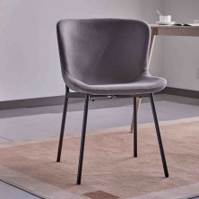 Silla de comedor Cai, tapizada en tejido gris oscuro con tratamiento antimanchas. Es una silla confortable, con asiento y respaldo en una sola pieza. Sus patas son metálicas en color negro, con estructura fuerte y resistente. Disponible en otros acabados en nuestra web. Ideal para comedores y salones de estilo moderno. Se vende en pack de 4 unidades.