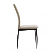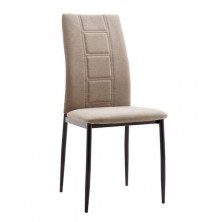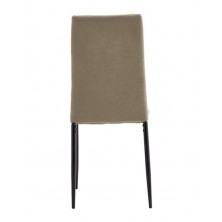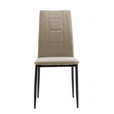 Silla de comedor Roxy con patas metálicas, color negro. Está tapizada en tejido beige oscuro con alto grado de confort. El respaldo tiene adorno geométrico pespunteado en el asiento con hilo al tono. Disponible en varios acabados y varios tejidos en nuestra web. Ideal para comedores y salones de estilo moderno. Se vende en pack de 6 unidades.