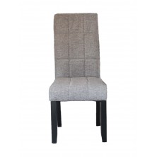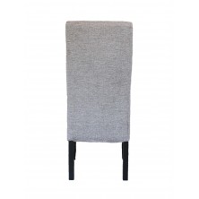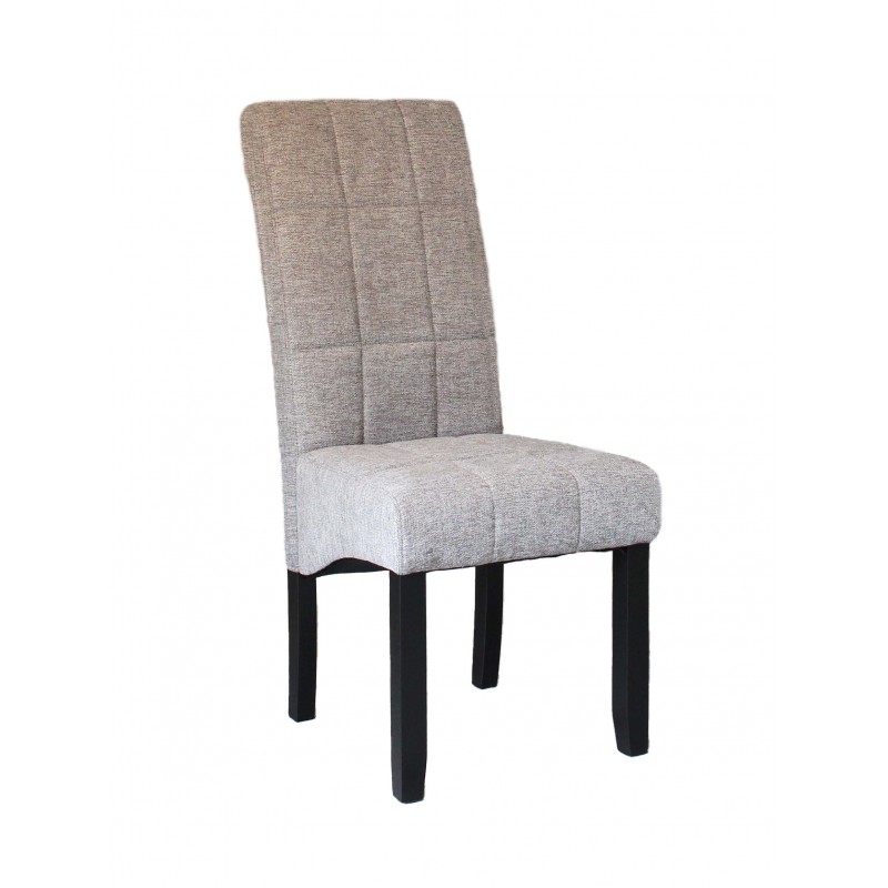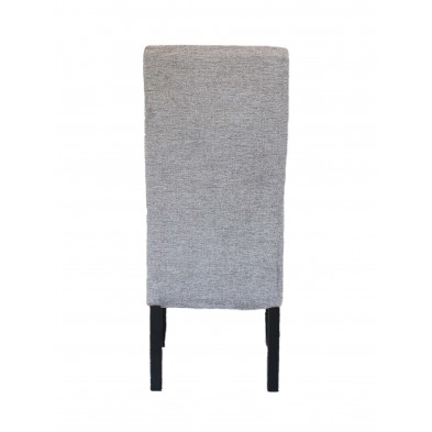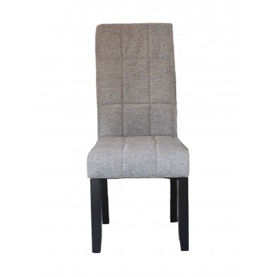 Silla Kali tapizada en tejido color gris, sus patas son de madera en color negro. Es una silla fuerte y resistente de uso diario, con asiento y respaldo acolchado, con una sentada agradable. Su diseño es moderno y actual, de líneas rectas y respaldo con detalle capitoné. Se venden en pack de 2 unidades.