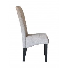 Kali es una silla con un diseño sencillo de líneas rectas, tapizada en tejido color gris, con respaldo tipo capitoné. Está fabricada en contrachapado de madera con relleno de espuma. Sus patas son de madera color negro, y en la parte inferior tiene conteras antirallado para no dañar el pavimento. Ideal para utilizar en salón, comedor, hostelería... De uso diario gracias a los materiales con los que está fabricada. Sus patas son fuertes y robustas.
