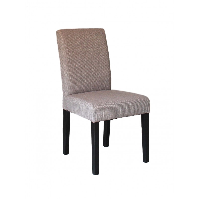 Silla Navy tapizada en tejido color piedra, sus patas son de madera en color negro. Es una silla fuerte y resistente de uso diario, con asiento y respaldo acolchado, con una sentada agradable. Su diseño es moderno y actual, de líneas rectas. Se venden en pack de 2 unidades.