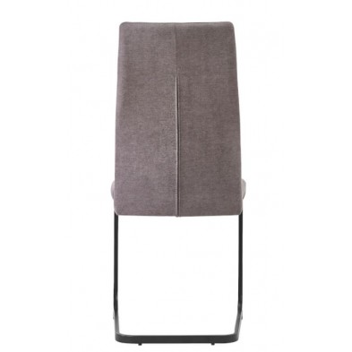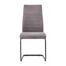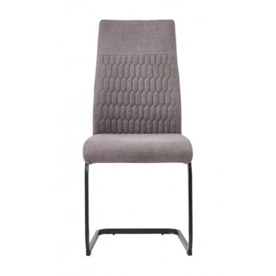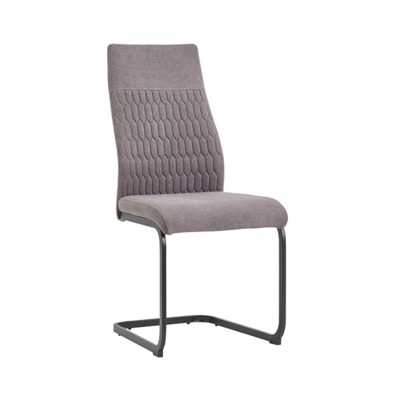 Silla Naya, fabricada en madera contrachapada con asiento y respaldo relleno de espuma. Tapizada en tejido gris con tacto suave. El respaldo cuenta con detalles geométricos. Es una silla fuerte y resistente de uso diario. Su diseño es moderno y actual, con pata metálica de patín, en acabado negro. Se venden en pack de 4 unidades.