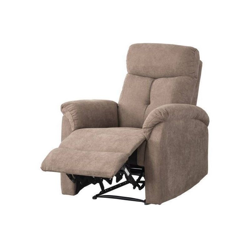 Tapizado en tejido suave y agradable color chocolate, con una sentada muy confortable. Pensado para uso diario, ya que se reclina fácilmente para descansar de manera cómoda. El mecanismo interior es metálico, que se acciona mediante palanca lateral. Podrás combinar en multitud de ambientes.