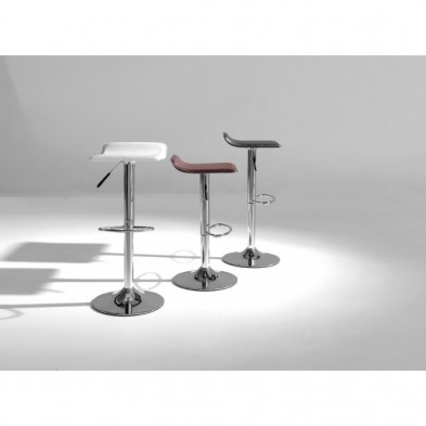 El taburete Orus se convierte en una opción de calidad para los bolsillos más exigentes. Su asiento está tapizado en eco piel y su base es de acero cromado, elevable mediante pistón gas y con reposapiés a media altura para mayor comodidad.
