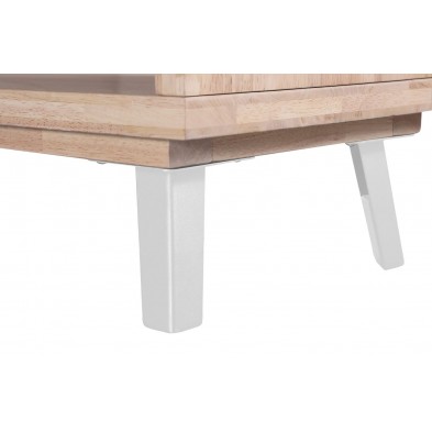 Sus patas son metálicas, en color blanco, para facilitar la limpieza. Además cuenta con hueco decorativo en la parte inferior, ideal para poner multitud de objetos, incluso aparatos electrónicos, ya que pueden pasar fácilmente los cables. Compuesta por puertas abatibles y hueco inferior, además en su interior tiene una baldas a media altura, ideal para utilizar de almacenamiento.