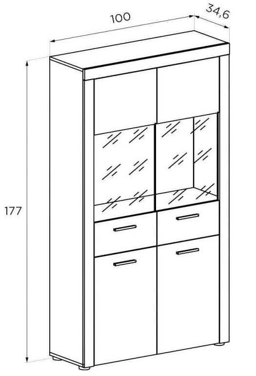 Medidas 100 (ancho) x 177 (alto) x 34,6 (fondo) cm.