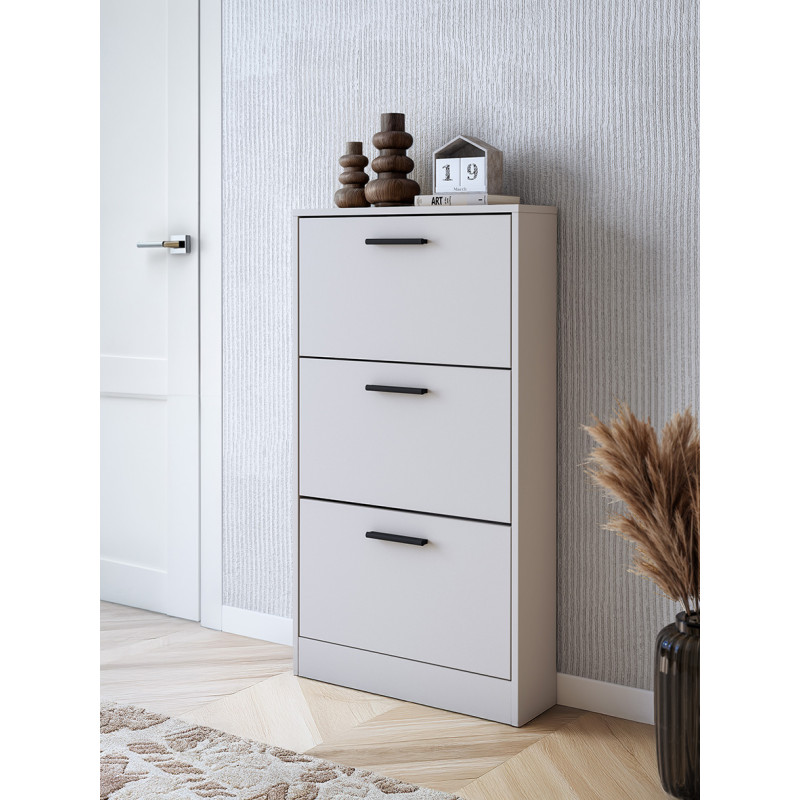 El Zapatero RAW Beige combina diseño y funcionalidad con un toque de calidez. Con 3 puertas abatibles y acabado luminoso, mantiene tu calzado ordenado con estilo. Fabricado con materiales resistentes y estética natural.