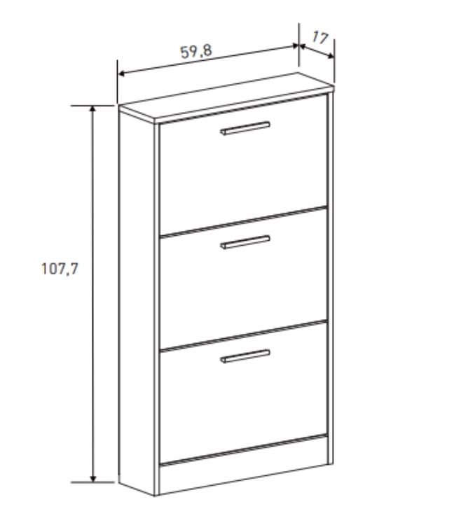 Con su estructura vertical y 3 puertas abatibles, ofrece una gran capacidad de almacenaje en el mínimo espacio. Ideal para mantener tus zapatos organizados de forma práctica y discreta, sin renunciar a la estética.