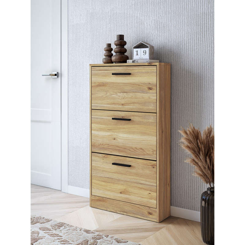 El Zapatero RAW combina diseño, funcionalidad y elegancia natural. Con sus 3 puertas abatibles, mantiene tu calzado ordenado en el mínimo espacio. Su estilo vertical y moderno se adapta a cualquier rincón, aportando calidez y equilibrio visual. Fabricado con materiales resistentes que hacen del orden un placer diario.